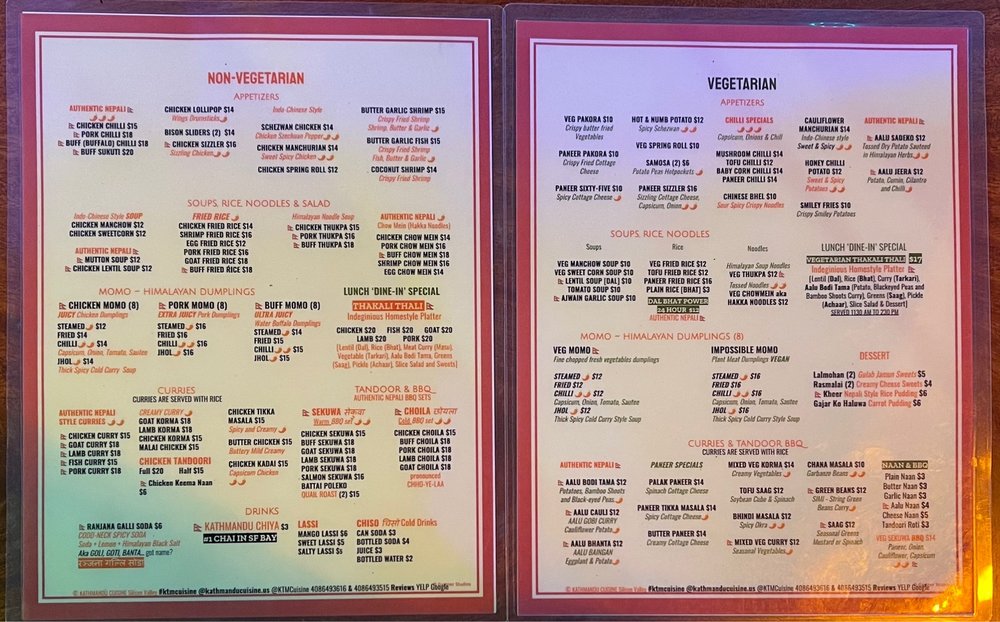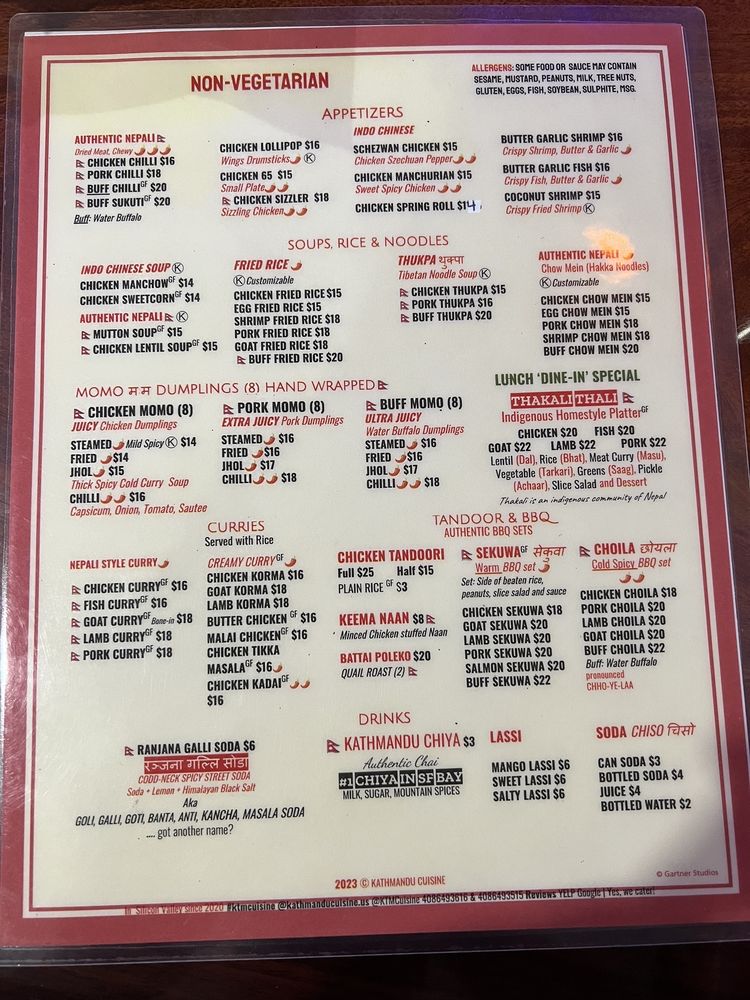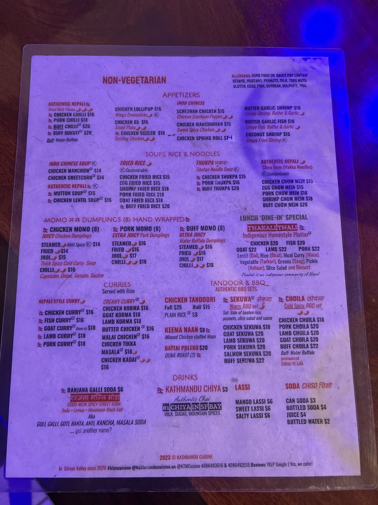 Located in Milpitas, Kathmandu Cuisine offers a wide range of Nepalese dishes in a casual and trendy atmosphere. The restaurant provides various amenities such as reservation options, delivery, takeout, and vegan options. With a focus on vegetarian options and accessibility accommodations, Kathmandu Cuisine caters to diverse preferences and needs. Customers rave about the authentic flavors of Nepal found in dishes like chicken dumplings, pork chowmein, and Buff Choila. The restaurant's unique ambiance, complete with Nepalese paintings and handicrafts, adds to the dining experience. Despite minor service issues, the overall vibe and food quality make Kathmandu Cuisine a must-try for those seeking a taste of Nepal in the Bay Area.